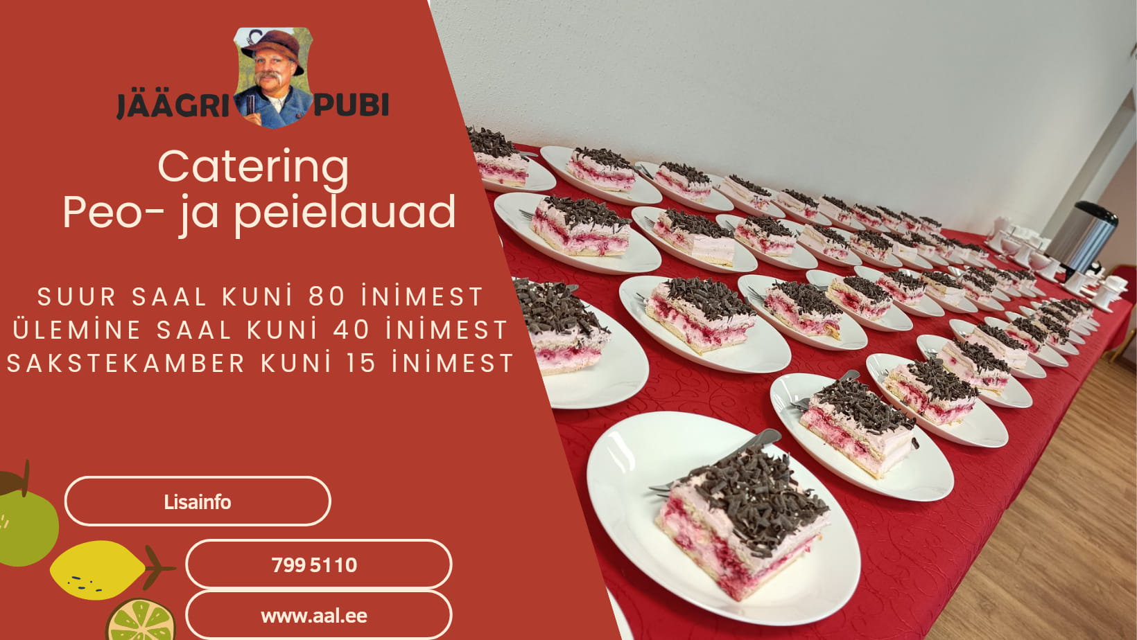 Jäägri pubi hubased peosaalid ootavad suuremaid javäiksemaid seltskondi. Peosaali mahub pidu pidama kuni 50-pealine seltskond, väiksema seltskonnaga pidude pidamiseks pakub pubi kuni 15-kohaga sakstekambrit. Jäägri Pubi maitsvat toitu on võimalik tellida kliendi enda poolt valitud peokohta catering teenusena. Kui Sa ei leia meie menüüst endale meelepäraseid toite, kohandame menüü vastavalt Sinu soovile.
